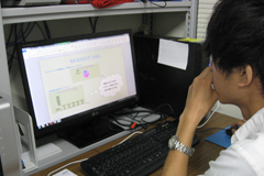 ![]() 議論のために,ホワイトボードに貼られた 作成途中の仁科君の作品 |
